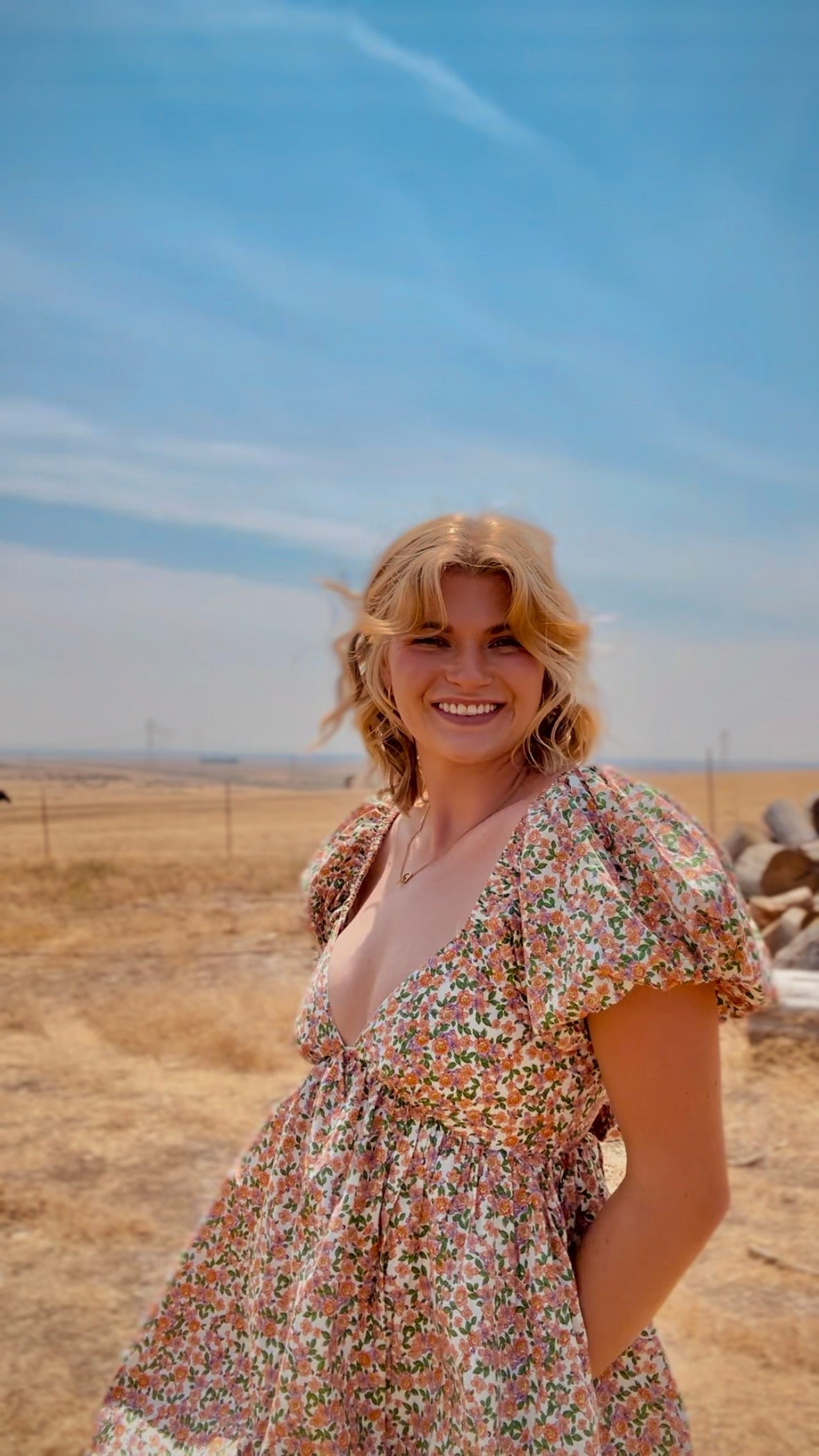 Summertime must have! This cute floral dress, is so flattering with its deep V-neckline, adorable bow feature. Plus it has POCKETS. Fits - True to size.